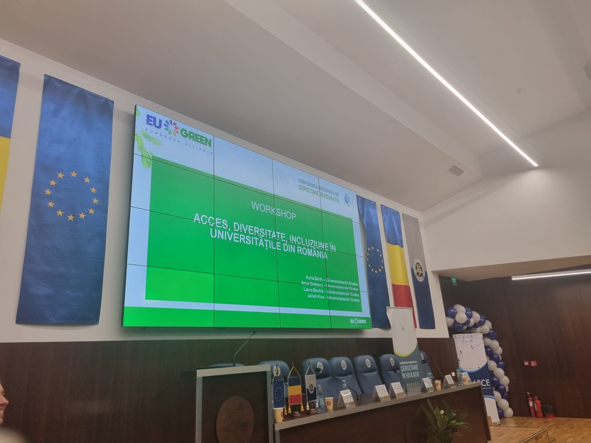 The Vice-Rector of the University of Oradea, Professor Dr. habil. Anca Dodescu, the local EU GREEN coordinator, together with the Dean of the Faculty of Socio-Human Sciences, Professor Dr. habil. Karla Barth, Work Package manager, proposed another interesting topic in the context of EU GREEN: “”Access, diversity, and inclusion in Romanian universities. How do we prepare?””