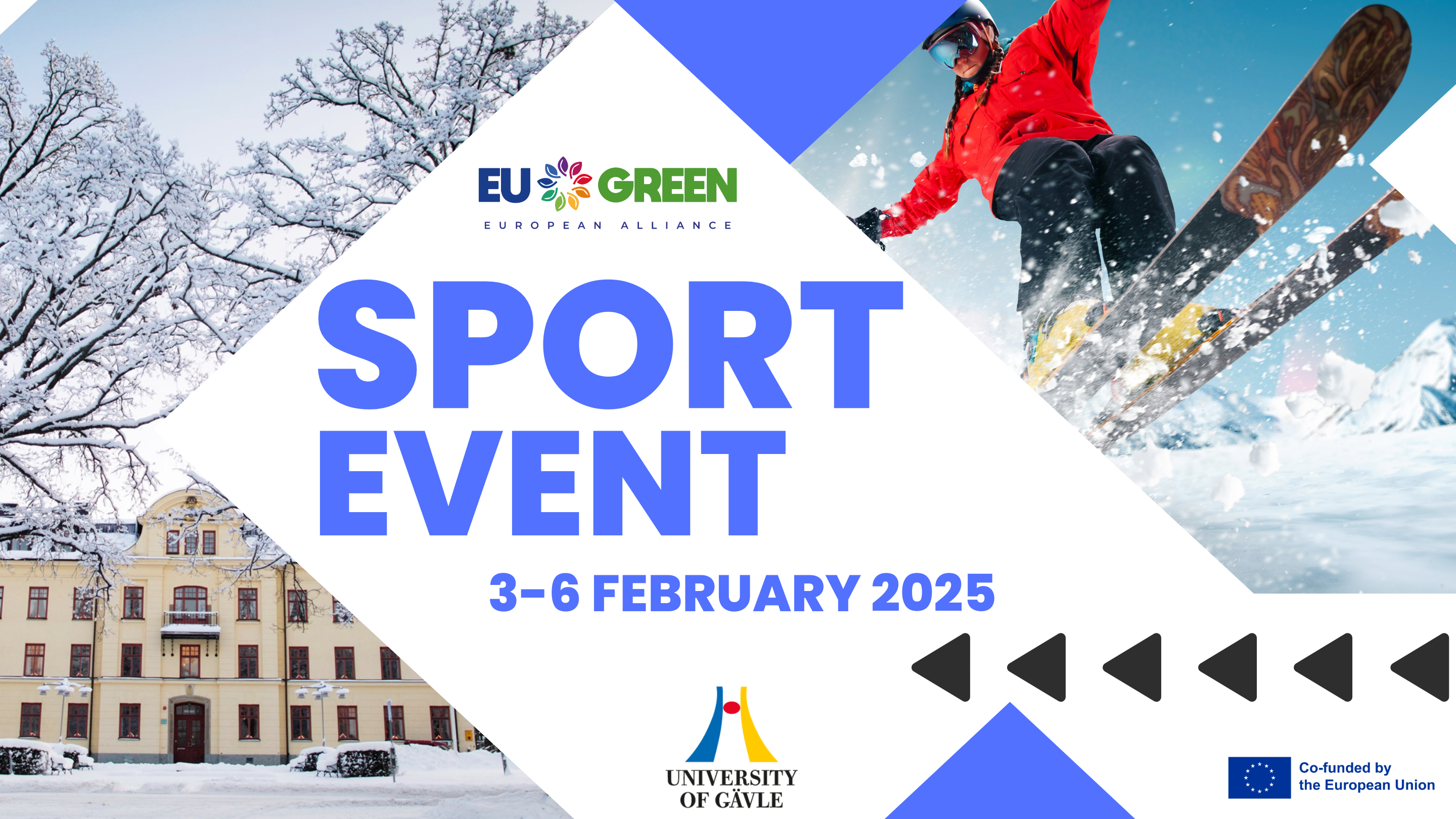 University of Gävle hosts the Winter Sport Event in Gävle from 3-6 February, 2025. Each university in the EU GREEN alliance has been invited to select students and staff to participate in the event. The event involves outdoor, indoor and classroom activities. Cultural activities will also be included in the programme.