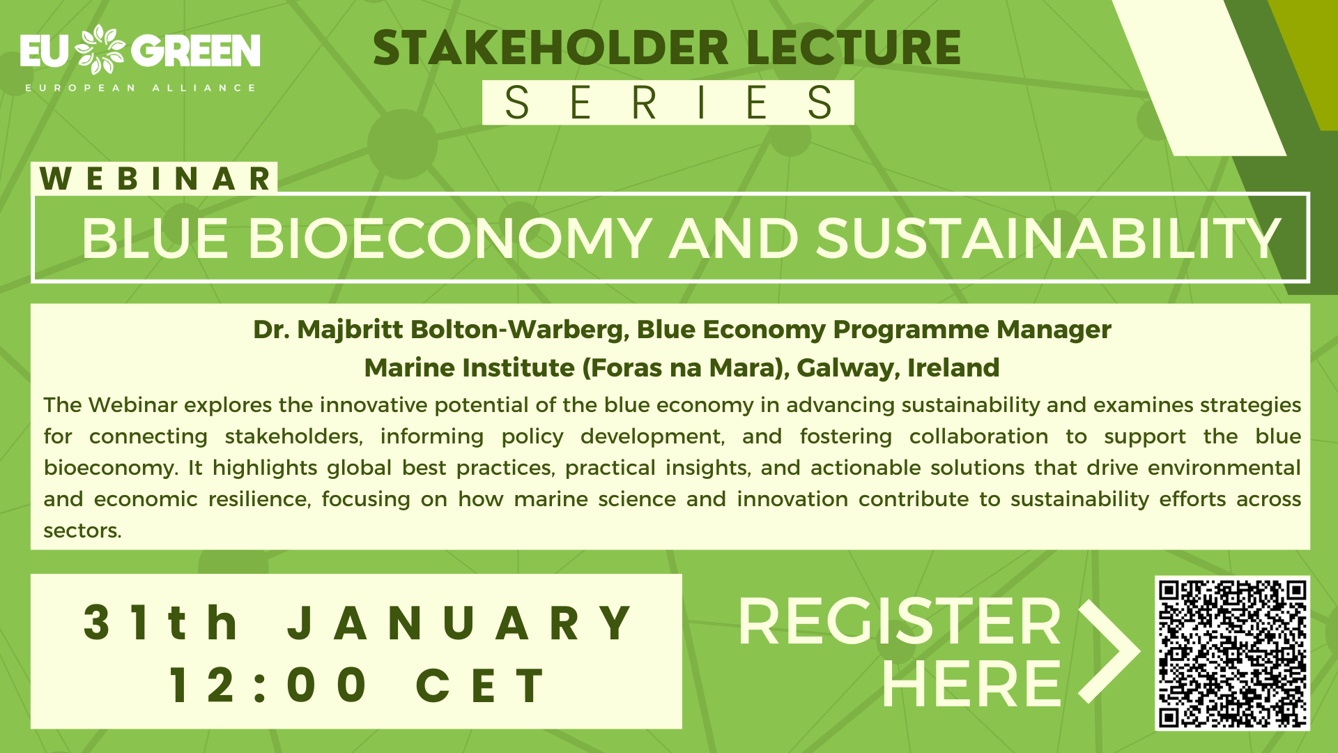 The Webinar explores the innovative potential of the blue economy in advancing sustainability and examines strategies for connecting stakeholders, informing policy development, and fostering collaboration to support the blue bioeconomy. It highlights global best practices, practical insights, and actionable solutions that drive environmental and economic resilience, focusing on how marine science and innovation contribute to sustainability efforts across sectors.