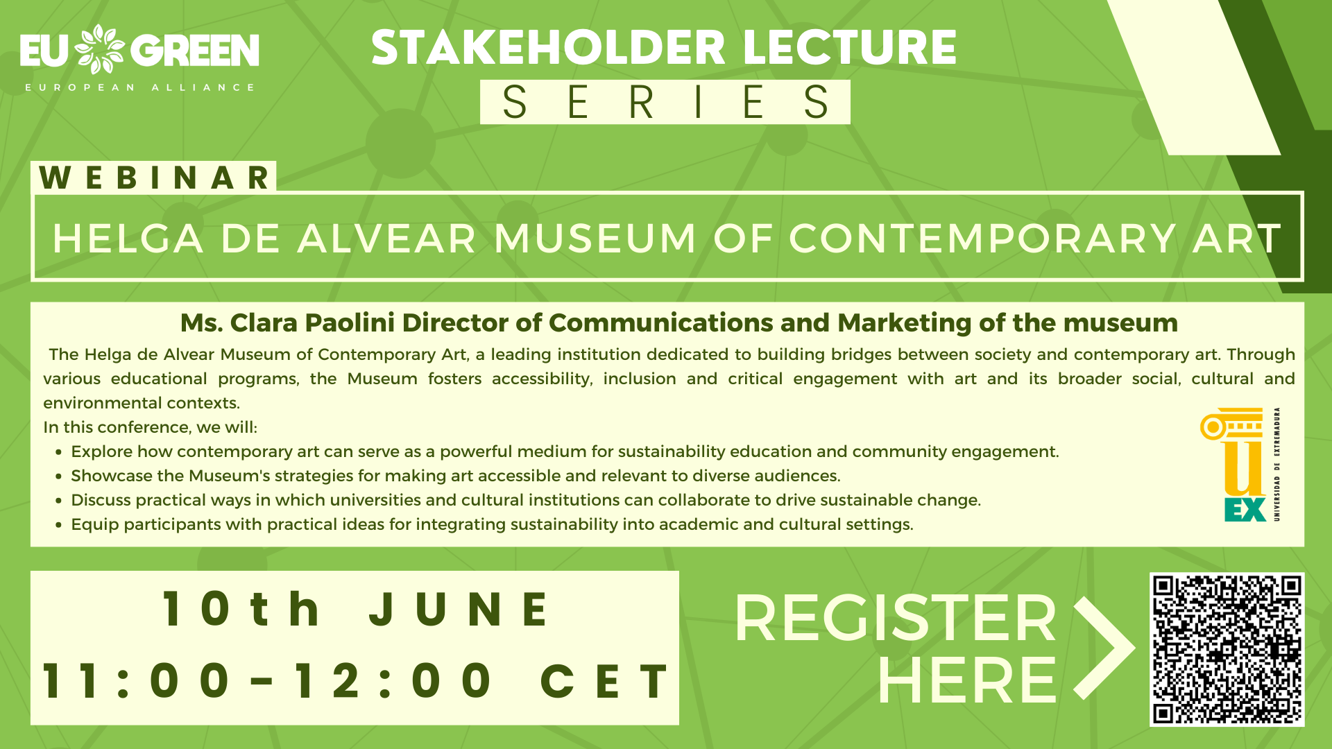 Join us for an inspiring session of the EU GREEN Stakeholders Lecture Series, in which we bring together the university community and its external partners to explore sustainability in its different dimensions (economic, social and environmental) through innovative approaches.
