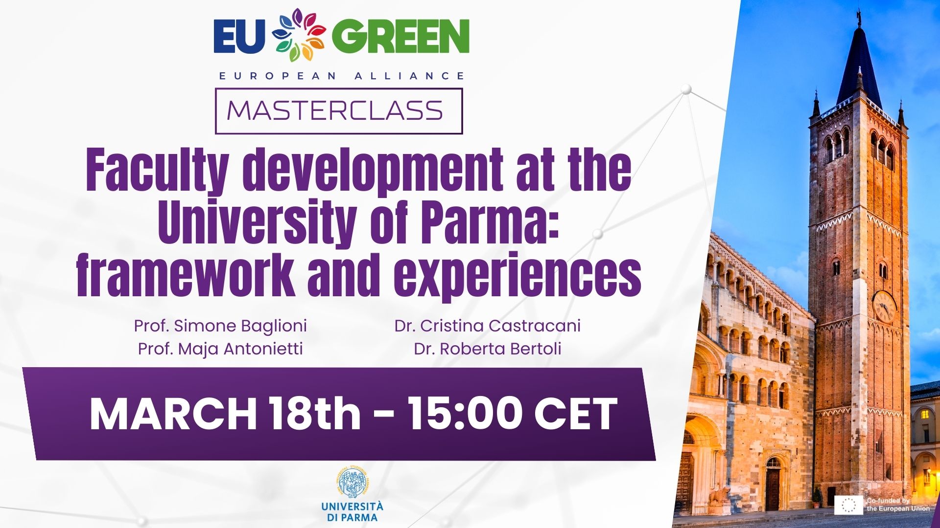 This EU GREEN masterclass will present the framework of faculty development in Italy and highlight the teacher training and teaching incentive model developed at the University of Parma over the past two years. The session will explore how universities can support innovative teaching practices and professional development for academic staff, while fostering a culture of…