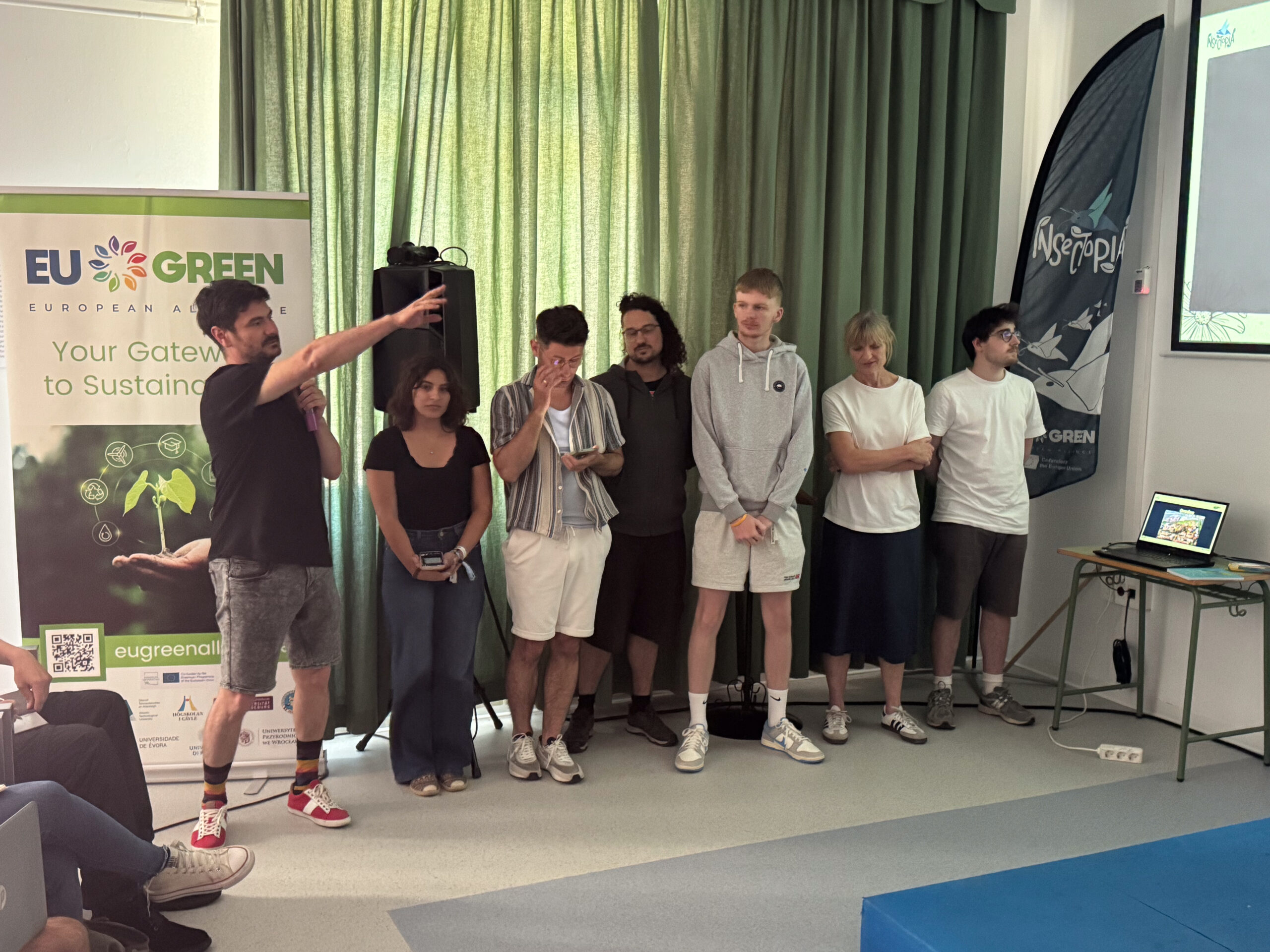 Organized by the University of Évora and supported by EU GREEN’s educational and research initiatives, the Hackathon welcomed nine finalist teams from different partner universities. Over two days of intense teamwork and mentoring, participants developed and pitched their projects to a jury composed of experts from academia, entrepreneurship, and the arts.